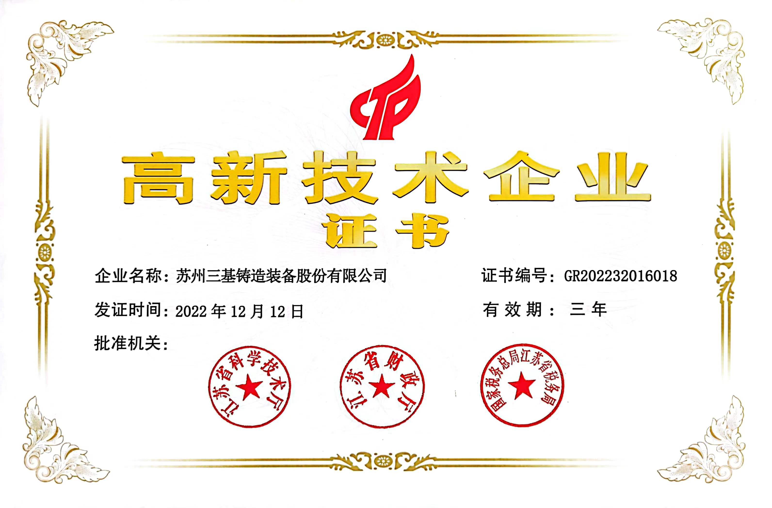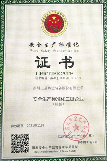 歷程23年,三基鑄造先后獲得了“江蘇省科技進(jìn)步獎”、“江蘇省機(jī)械行業(yè)科技進(jìn)步”、“蘇州市科技進(jìn)步獎”、“蘇州市雙杯獎”、“國家重點(diǎn)新產(chǎn)品”、“江蘇省優(yōu)秀新產(chǎn)品”、"江蘇省優(yōu)秀新產(chǎn)品金獎"等榮譽(yù)