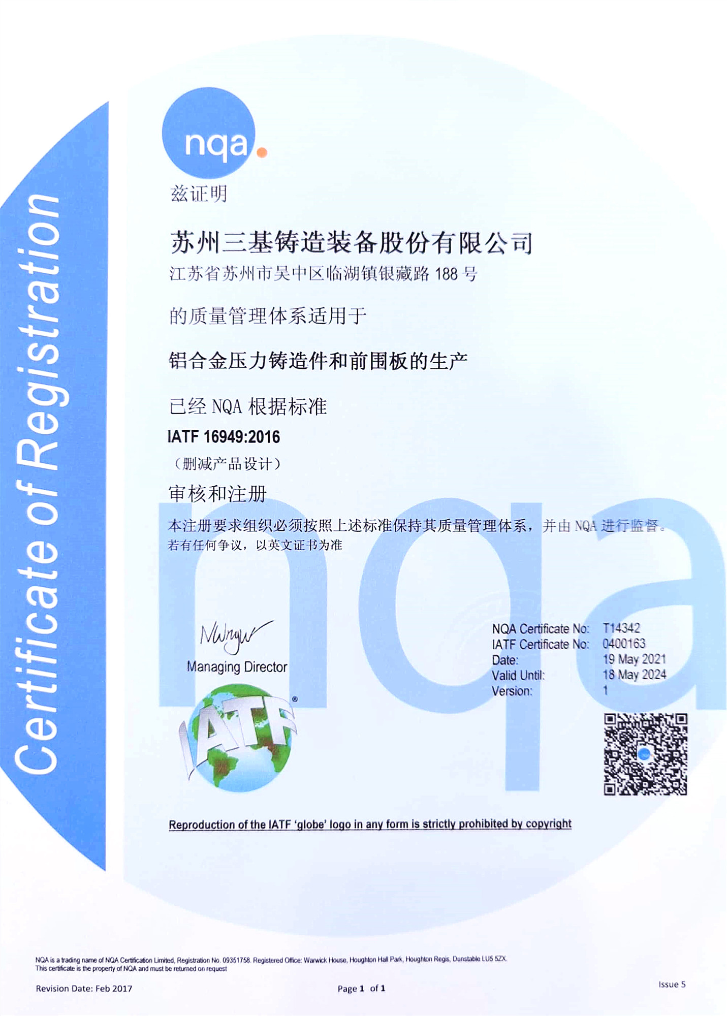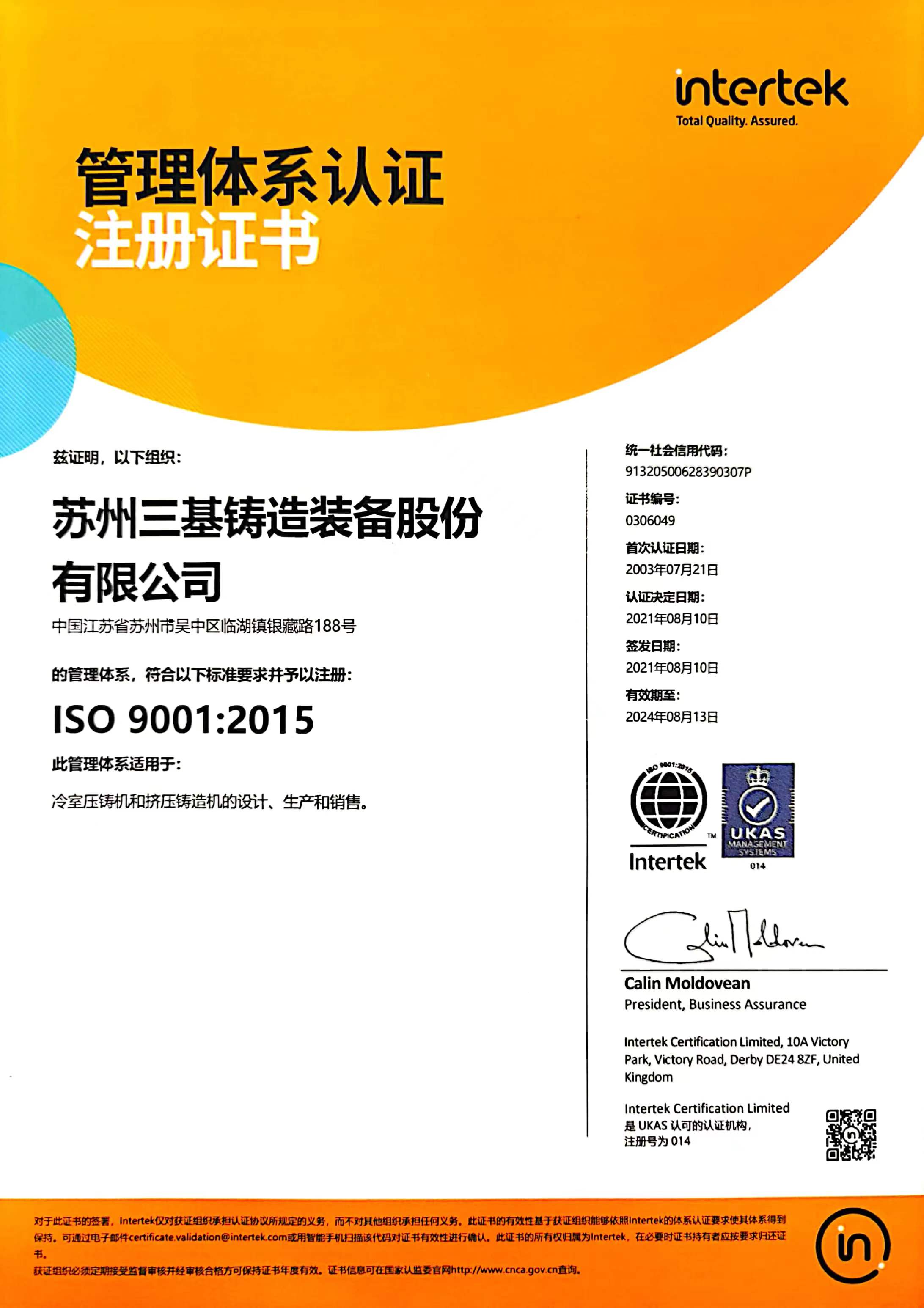 蘇州三基鑄造裝備股份有限公司創(chuàng)始于1996年,是一家專業(yè)從事于壓鑄機(jī)、擠壓鑄造機(jī)及半固態(tài)成型鑄造機(jī)等輕合金鑄造成套裝備研究、開發(fā)、生產(chǎn)和銷售的高新技術(shù)企業(yè)。公司有多項新產(chǎn)品、新技術(shù)達(dá)到了國際先進(jìn)水平。蘇州三基鑄造裝備股份有限公司擁有上海三基壓鑄機(jī)械制造有限公司(全資子公司)、南通合眾輕合金成型科技有限公司(全資子公司)、馬鞍山三基輕合金成型科技有限公司、蘇州三基壓鑄自動化系統(tǒng)有限公司(控股子公司)以及三基工業(yè)(美國)公司等子公司。公司在全國各地10幾個城市設(shè)有銷售辦事處和客戶服務(wù)中心,產(chǎn)品遠(yuǎn)銷全國各地以及國外如美國、俄羅斯、西班牙、印度、印尼、馬來西亞、土耳其、匈牙利、瑞典、巴西等10多個國家。