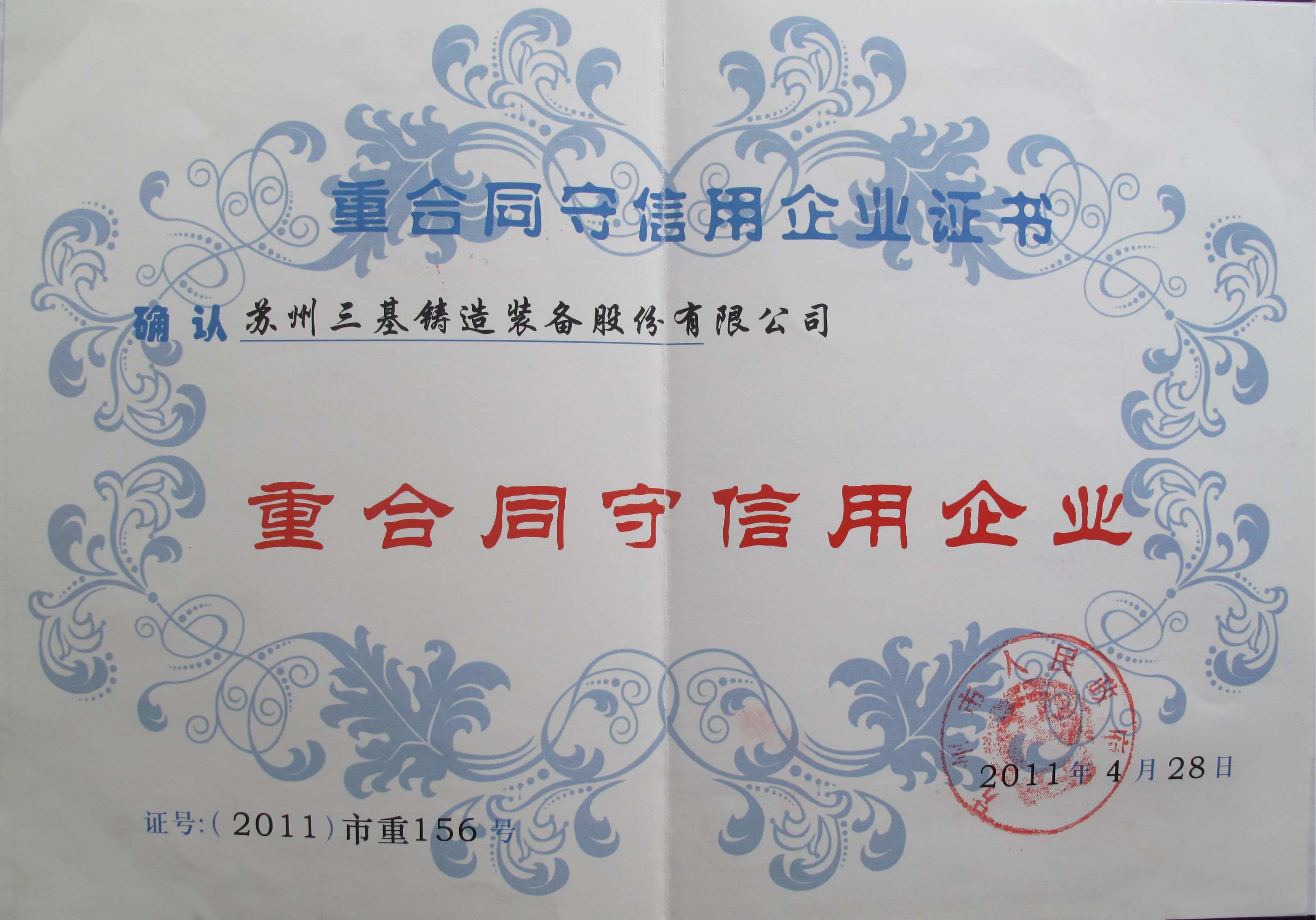 公司獲得“高新技術(shù)企業(yè)”、“江蘇省民營科技企業(yè)”、“全國首屆鑄造分行業(yè)排頭兵企業(yè)”、“省依法治企誠信經(jīng)營先進(jìn)企業(yè)”、“江蘇省機(jī)械行業(yè)文明單位”、“江蘇省創(chuàng)新型企業(yè)”、“勞動關(guān)系和諧企業(yè)”、“納稅先進(jìn)企業(yè)”、“蘇州市重合同守信用企業(yè)”、“蘇州市兩化融合試點(diǎn)企業(yè)”、“江蘇省科技型中小企業(yè)”、“蘇州市創(chuàng)新先鋒企業(yè)”、“江蘇省信用貫標(biāo)企業(yè)”、“江蘇省數(shù)字三星企業(yè)”、“蘇州市人才科技工作示范基地”、“蘇州市自主品牌制造服務(wù)化示范企業(yè)”“機(jī)械工業(yè)管理進(jìn)步示范企業(yè)”等榮譽(yù)。
