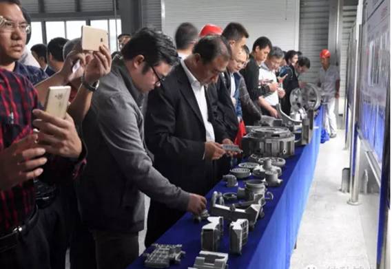 參會代表觀看高檔擠壓鑄造件研發(fā)成果